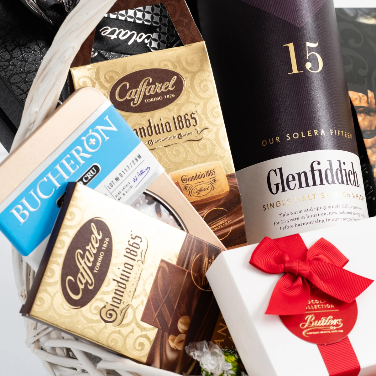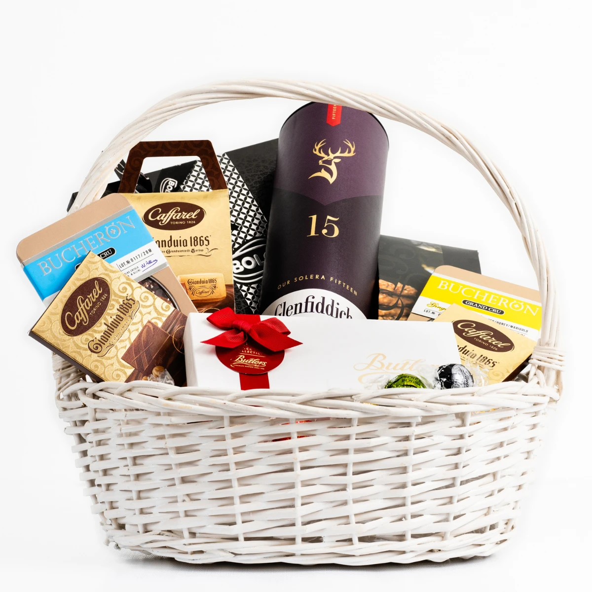 Перфектният подарък за ценители – кошница с Glenfiddich 15, шоколадови специалитети и гурме продукти. Идеална за празнични или корпоративни събития!Подаръчната кошница с Glenfiddich 15 е израз на стил и внимание към детайла. Тази уникална комбинация от първокласно уиски и изискани гурме продукти е създадена, за да впечатли дори най-изискания вкус.